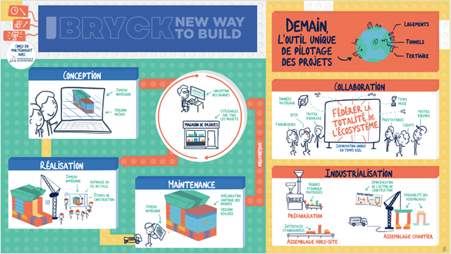 Le groupe Bouygues n’avance pas seul dans son appréhension du jumeau numérique. Dassault Systèmes l’accompagne notamment au sein de BRYCK et leur partenariat vient d’ailleurs de renouveler à long terme, jusqu’en 2030. Ce projet est en quelque sorte le bac à sable de toutes les approches à appréhender, donnant aussi l’occasion d’apprendre de ses échecs.