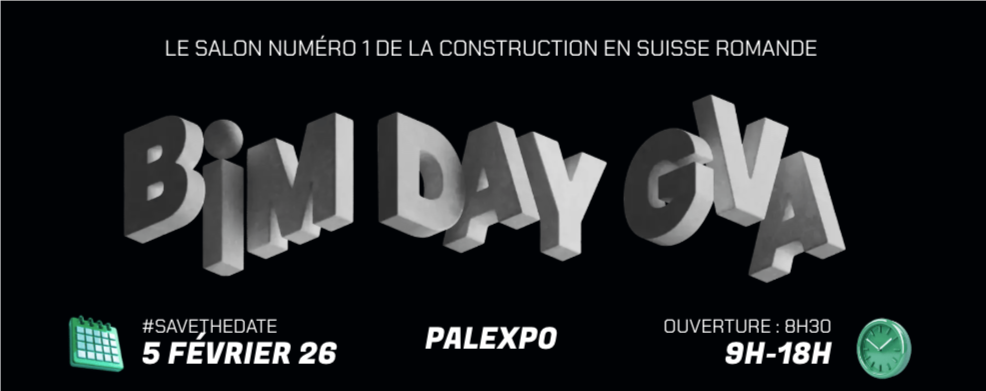 BIM DAY GVA est le salon de référence de la construction numérique en Suisse romande, entièrement dédié au BIM et aux technologies innovantes du secteur. L’édition 2026 se tiendra le 5 février 2026 à Palexpo Genève, de 9h à 18h.