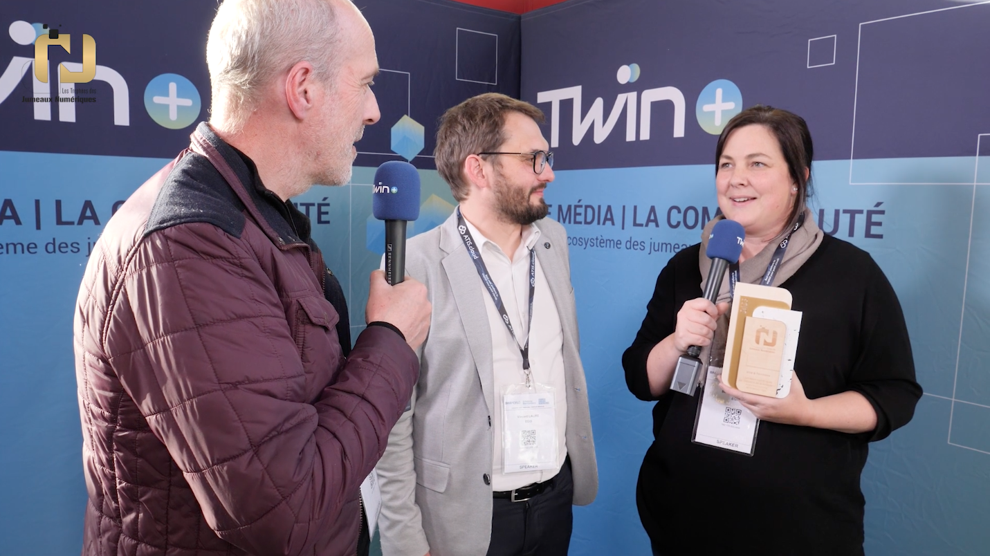 Vincent Lalire, Responsable de la transformation à la Direction de l’ingénierie digitale du Groupe Egis, et Bénédicte Authié Experte technique SIG, ingénieure SIG chez Egis, ont reçu un Trophée des Jumeaux Numériques, catégorie Ville & territoire, pour leur projet "Jumeaux numériques de l'Estuaire de la Gironde", proposé avec Fabrice Klein, Chef de projet innovation transversale au Grand Port Maritime de Bordeaux., malheureusement reparti juste avant la cérémonie. Ils partagent avec lui leurs premières réactions, au micro de Steve Carpentier.